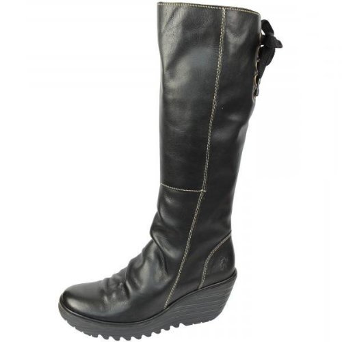 Fly London Womens Black Yust High Boots 0 ... NEW Women's Fly London YUST Black Leather Wedge Knee Boot ... FLY LONDON YUST BLACK DEEP OIL SUEDE WEDGE BOOTS UK SIZE 7 ...